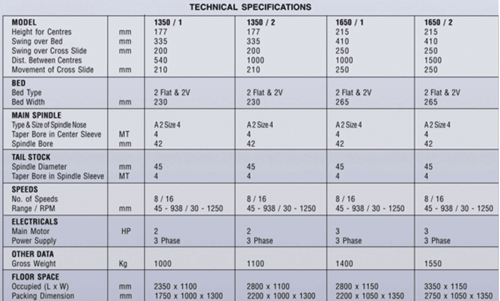 Height of Centres Swing over Bed Swing over Slide Between Centres Slide Movement |
