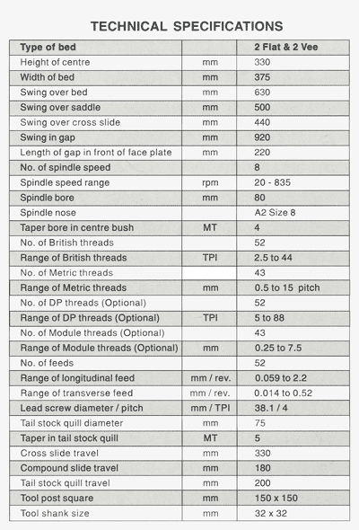 • Lathe Bed Is Of Close Grained Alloy Castings Duly Flame Hardened And Ground With Brinell Hardness Of Over 300 Bhn
